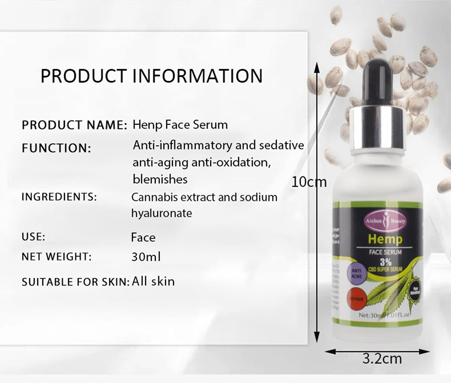 - This product is infused with abundant Hemp seed extract and sodium hyaluronate.